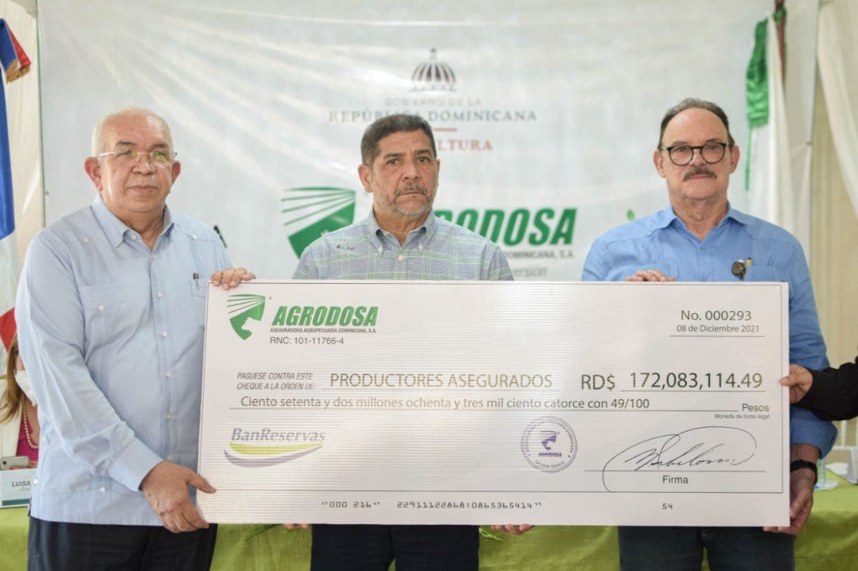 LA VEGA. – Por disposición del presidente Luis Abinader, el Ministerio de Agricultura entregó este miércoles 172 millones de pesos a través de la Aseguradora Agropecuaria Dominicana (Agrodosa), a 481 productores de diferentes rubros de esta provincia, que resultaron afectados por daños y pérdidas en sus actividades agrícolas y pecuarias.