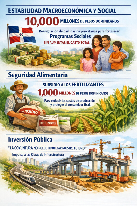 - Estabilidad macroeconómica y social: Se han identificado 10,000 millones de pesos mediante la reasignación de partidas no prioritarias para fortalecer programas sociales sin aumentar el gasto total.