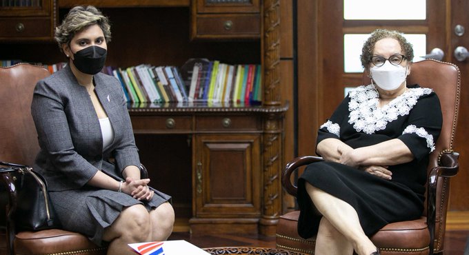 La procuradora general de la República, Miriam Germán Brito (d) y la presidenta del Consejo Directivo de la Comisión Nacional de Defensa de la Competencia (Pro-Competencia), María Elena Vásquez Taveras. / @ProcuraduriaRD