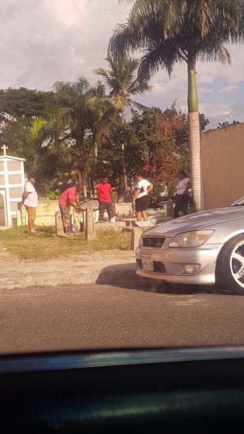 En el cementerio Cristo Redentor, en Santo Domingo Oeste las hermanas Sonia y Teodora Ramírez manifestaron que todos los años visitan a la tumba de su padre quien falleció hace más de cinco años y aprovechan para limpiarla, traerle flores y encenderle un velón.