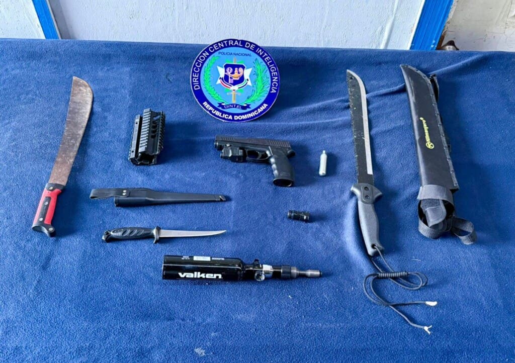 En un segundo allanamiento, realizado mediante la orden judicial No. 2025-AJ0084527, en el sector Villa Vista, se ocuparon una pistola de fogueo con tanque de aire, un guardamonte para fusil y tres armas blancas, consistentes en un cuchillo y dos machetes. El propietario de la vivienda no se encontraba presente al momento del registro, el cual se llevó a cabo en presencia de un familiar.