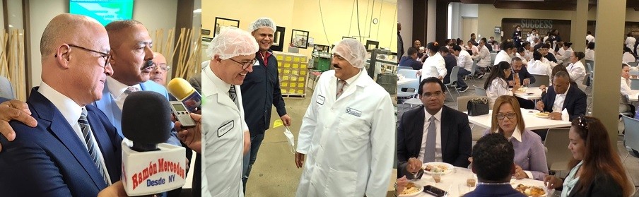 En dicha industria, el doctor Yomare Polanco, principal ejecutivo, ofreció un almuerzo y recorrido junto a sus acompañantes por las instalaciones de la empresa, con más de 500 mil pies cuadrados, 917 trabajadores de diferentes etnias, en su mayoría dominicanos, y la fabricación de más de 100 productos medicinales y alimenticios que se distribuyen en las principales cadenas farmacéuticas, supermercados, comerciantes masivos, mayoristas y distribuidores en todo Estados Unidos.