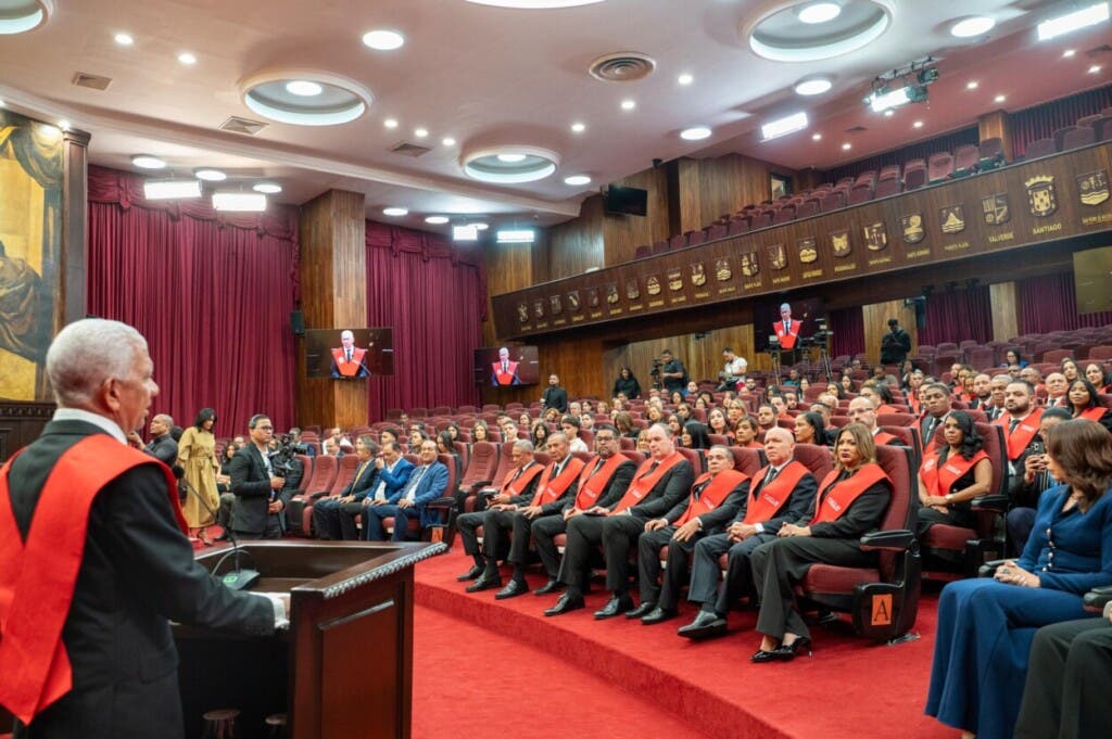La ceremonia fue encabezada por de los Santos, junto al representante académico de la UCLM, Marcos Francisco Massó Garrote; el presidente del Tribunal constitucional, Napoleón Estévez Lavandier, y la senadora Lía Díaz de Díaz, secretaria del bufete directivo.