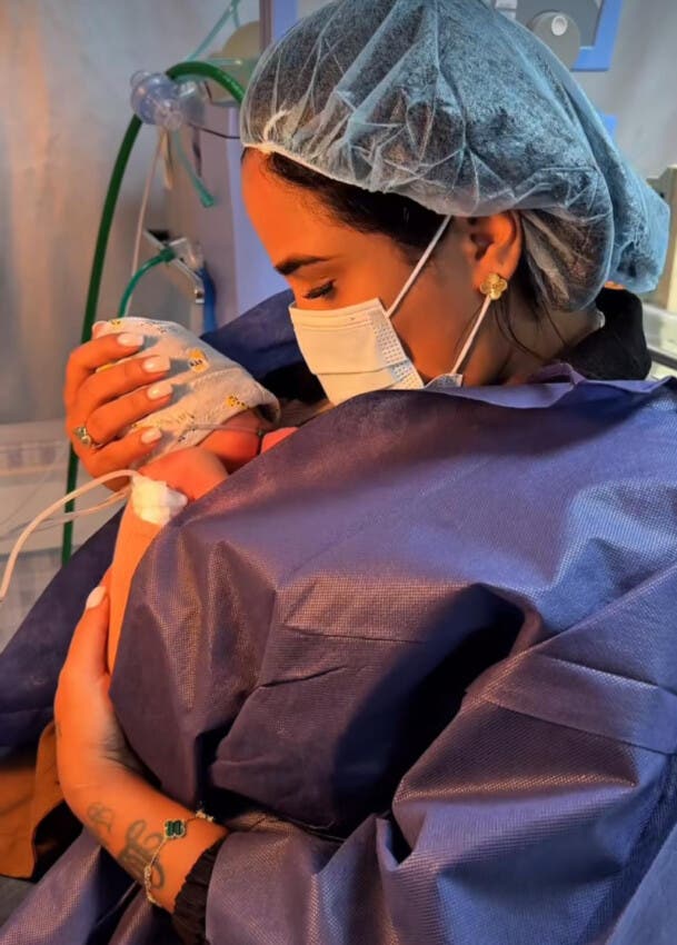 Anteriormente la artista explicó que el parto se adelantó un poco, lo que obligó al equipo médico a realizar una intervención menor para colocar un catéter en el pulmón del recién nacido. Sin embargo, los estudios recientes indican una evolución positiva.