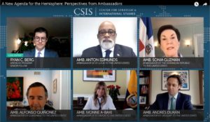 La diplomática habló del tema al participar en un panel en vivo con otros embajadores regionales en el que debatieron las prioridades conjuntas para los países del hemisferio occidental en el Programa de las Américas del Centro de Pensamientos Estratégicos e Internacionales (CSIS), un importante centro de pensamiento dedicado a promover ideas prácticas para abordar los mayores desafíos del mundo.