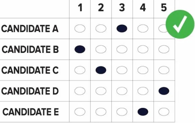 Otra acción es no clasificar a varios candidatos en el mismo puesto, su voto será anulado. Si el votante tiene alguna duda, desea hacer una pregunta o cometió errores, puede acudir a un trabajador electoral del centro de votación o solicitar una nueva papeleta si considera que cometió un error, e iniciar el proceso de nuevo. Si un candidato obtiene más del 50 % de los votos como primera opción, gana automáticamente la elección. En caso que ninguno no obtenga más del 50%, los votos se siguen juntando por rondas. En cada ronda, quedará eliminado el candidato con menor cantidad de votos. Si el candidato que usted clasificó en primer lugar queda eliminado, su voto le será asignado al siguiente candidato mejor clasificado en su papeleta. Este mismo proceso continuará hasta que sólo queden dos candidatos y gane el que obtenga más votos.