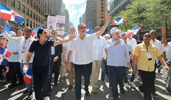 ►Aclamaron al presidente en NY: El presidente Luis Abinader, durante sus 48 horas de estadía en esta ciudad, fue aclamado por cientos de perremeístas este domingo en el “Desfile Dominicano en Manhattan”, al que asistieron un poco más de 500 mil personas, similar al año anterior, aunque sectores interesados quisieron vendernos la idea de que hubo más de un millón. ¡Huumm! Diiicen que al presidente le aseguraron que todas esas personas lo estaban apoyando y por eso fue que ordenó desde la Gran Manzana publicar el video pregrabado, anunciando su reelección. ¡Wepa! Abinader, como “Gran Mariscal” del evento, recorrió 10 cuadras (desde la calle 36 hasta la 46) Sus partidarios mostraban carteles, pancartas, letreros en demasía y pidiendo “4 más”. En esa misma tonalidad lo hicieron miles de allegados de funcionarios gubernamentales y de dirigentes perremeístas, que llegaron desde decenas de ciudades de Nueva Jersey, Connecticut y Pensilvania, entre otros estados, diiicen. La mayoría de los asistentes al “Desfile” no se mostraron ni a favor ni en contra de ninguno de los dos bandos que aclamaban y otros abucheaban al mandatario, limitándose solo a vociferar ¡Viva la RD!, ¡Dominicana el país más bonito del mundo!, ¡Wepa, Wepa!, ¡Esto es maravilloso! ¡Qué orgullo ser dominicano! ¡Qué viva la Patria! entre otras expresiones imparciales políticamente. Ver Video: https://www.youtube.com/watch?v=FRcT2lB3qxY