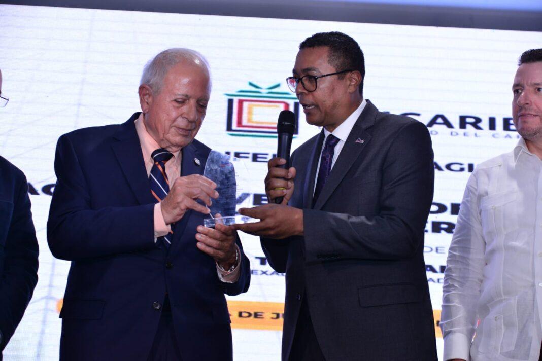 La misma le fue entregada por el Dr. Emilio Mínguez, rector académico de UNICARIBE y el presidente de la Liga Municipal Dominicana, Víctor D ’Aza, quien felicitó a la universidad por crear espacios que reúnen a distintos actores de la vida política del país en un ejercicio de diversidad.
