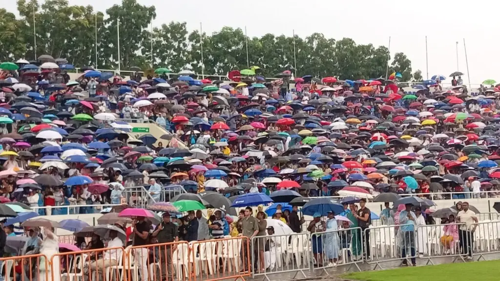 En medio de un clima lluvioso, el religioso hizo alusión al fraude contra el Servicio Nacional de Salud (SENASA), por más de 15 mil millones de pesos, según consta en la acusación del Ministerio Público.