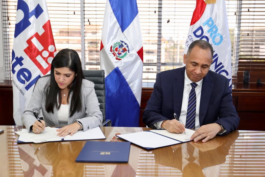 El convenio fue suscrito por el presidente del Consejo Directivo del Indotel, Nelson Arroyo y la directora ejecutiva de ProDominicana, Biviana Riveiro Disla.
