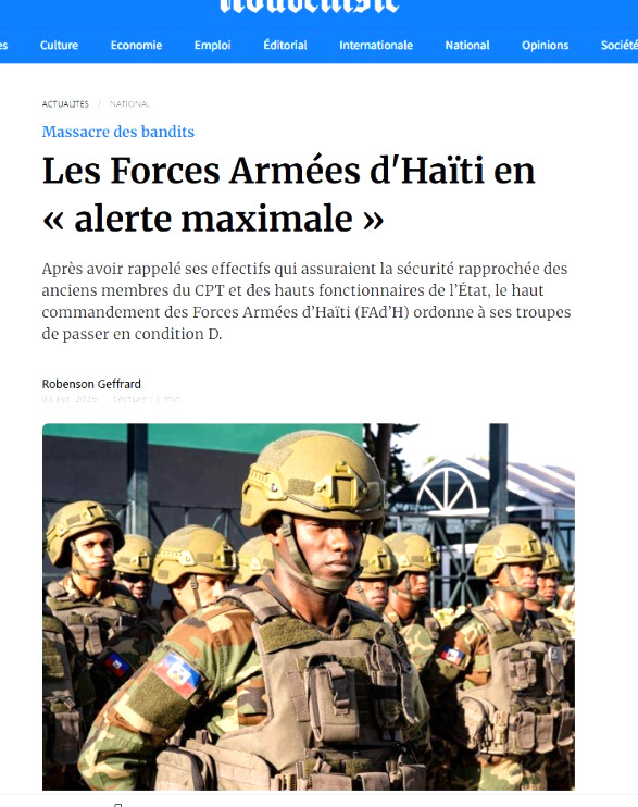 Se ordenó que el próximo el lunes, a partir de las 8:00 a. m. (13:00 GMT) todos los militares deberán presentarse en sus respectivos cuarteles y se exigirá una disponibilidad total del personal. Quedan suspendidos todos los permisos, licencias y exenciones hasta nuevo aviso, informaron las autoridades militares, dice el comunicado difundido por el periódico Le Nouvelliste.