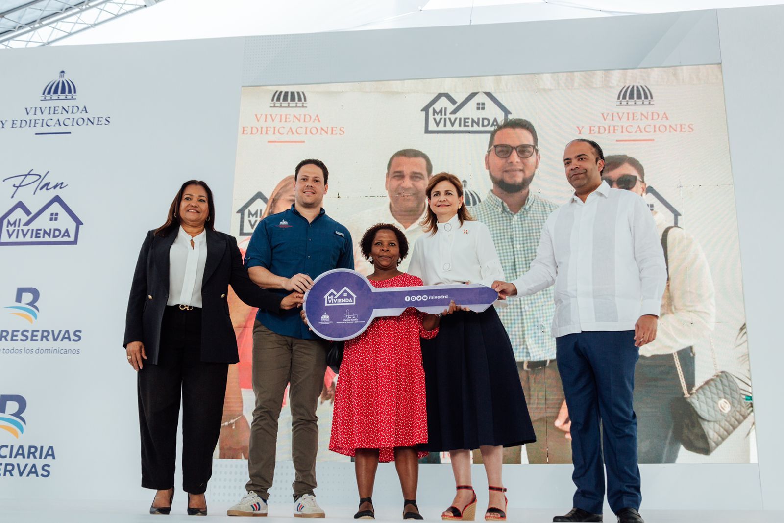 Santo Domingo. El Ministerio de la Mujer y de la Presidencia, entregaron 10 Bono Mujer a beneficiarias del Plan Nacional de Viviendas Familia Feliz del residencial Don Antonio, en San Gregorio de Nigua, San Cristóbal. El acto estuvo encabezado por la ministra de la Mujer, Mayra Jiménez y por el viceministro de Proyectos de Inversión del Minpre, Camel Curi.