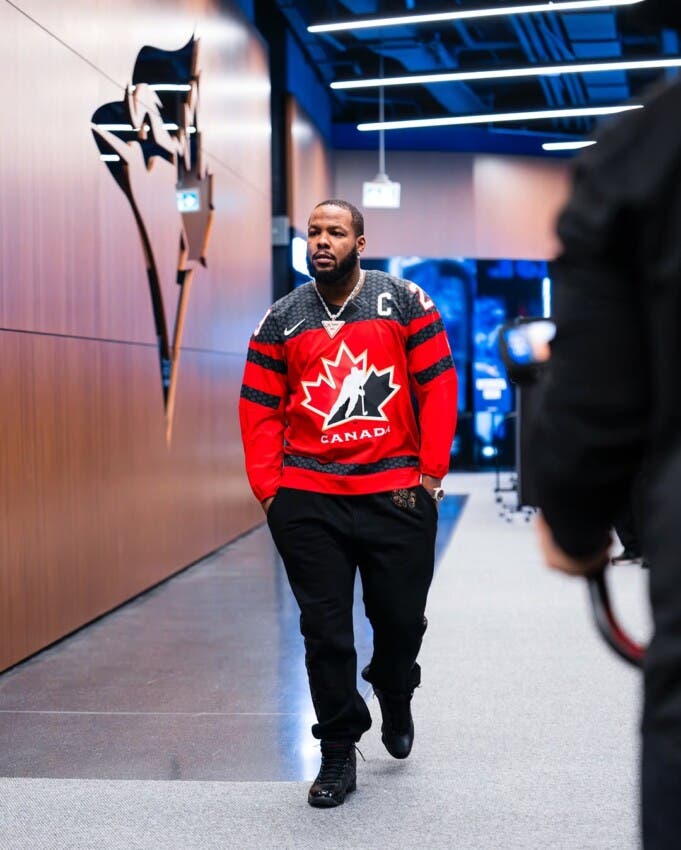 El toletero de los Azulejos de Toronto llegó al Rogers Centre el sábado vistiendo el jersey rojo de la selección canadiense de hockey con el nombre de Poulin, una figura que ha inspirado a generaciones con su liderazgo y espíritu ganador.