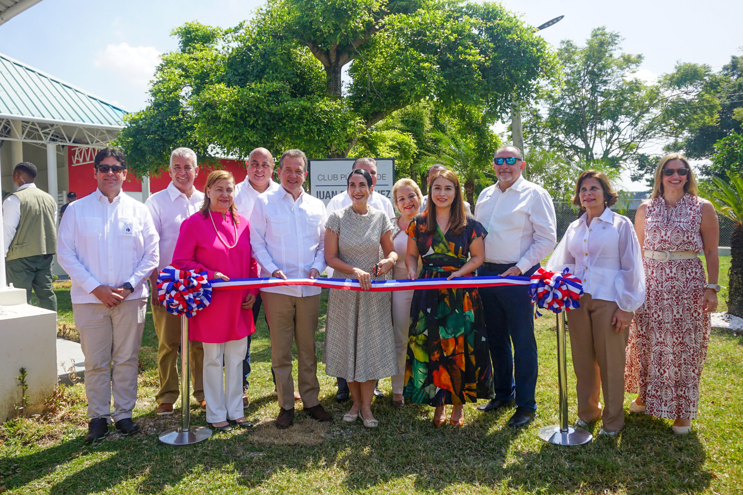 La Vega.- La primera dama Raquel Arbaje, el ministro de Industria, Comercio y Mipymes (MICM), Víctor Bisonó; la empresa PepsiCo Dominicana y la Asociación Dominicana de Productores de Cemento Portland (ADOCEM), inauguraron en la comunidad La Barranca, en La Vega, el remozamiento del Club Público Juan Rodríguez.