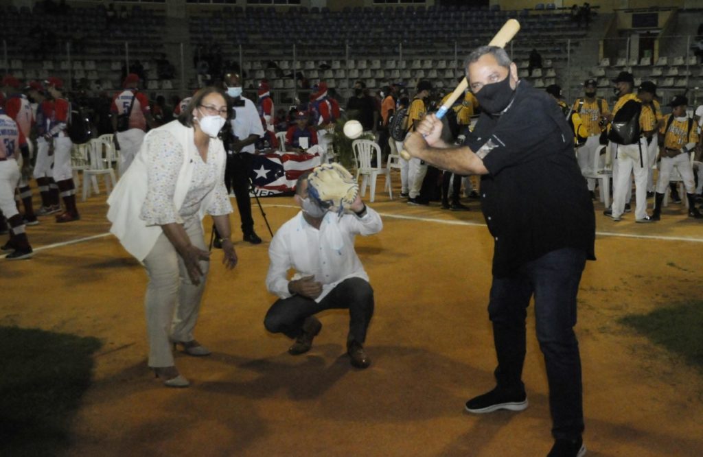 Rosy Ruiz tiró la primera bola, bateada por Junior Noboa y recibida por Kennedy Vargas.
