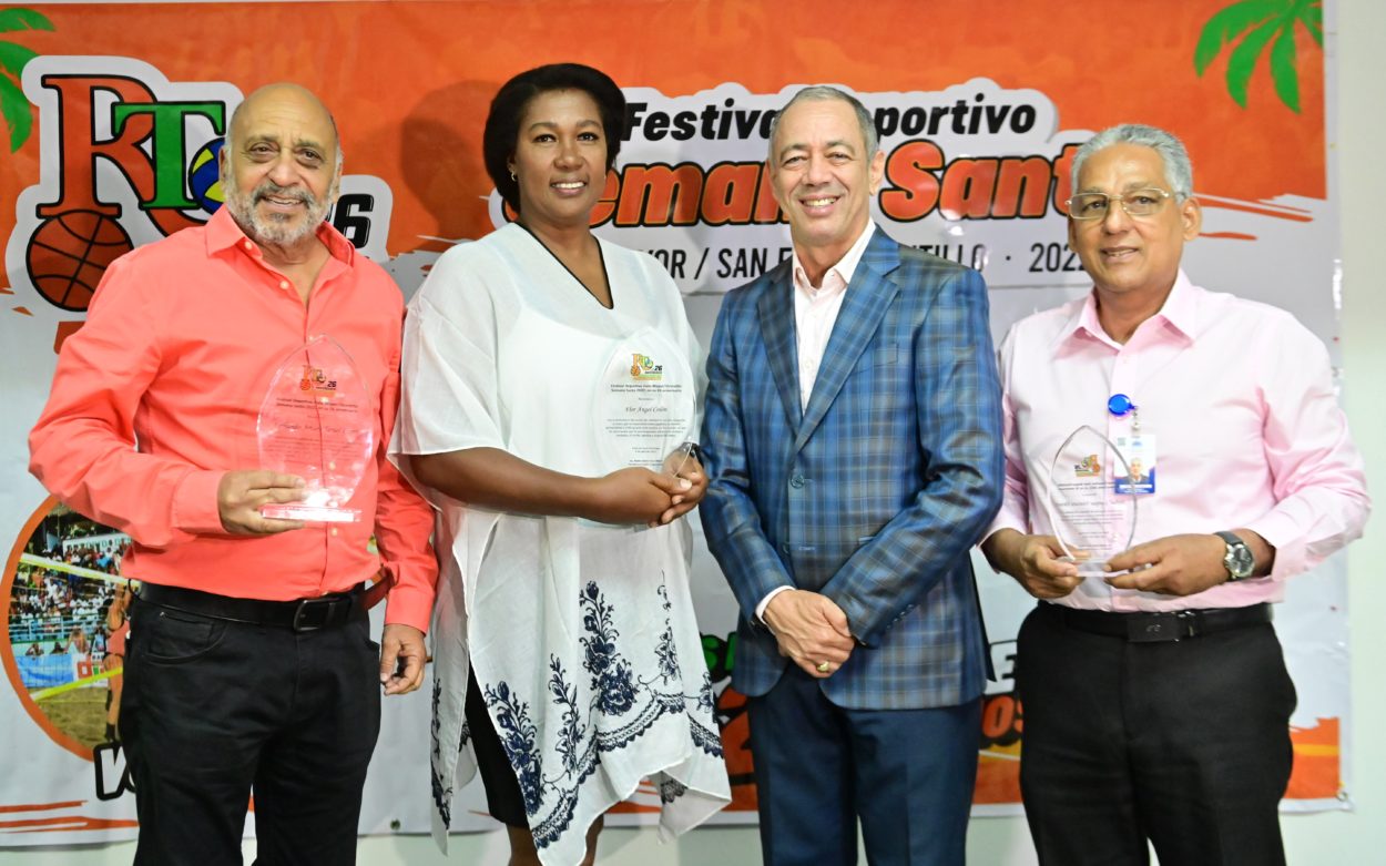 Rubén Darío Cruz, tercero desde la izquierda, presidente del Comité Organizador del Festival Deportivo, junto a Fernando Teruel, Flor Colón y Neftalí Ventura.