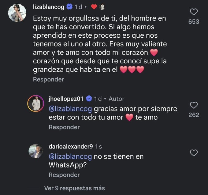 “Estoy muy orgullosa de ti, del hombre en que te has convertido. Si algo hemos aprendido en este proceso es que nos tenemos el uno al otro. Eres muy valiente, amor, y te amo con todo mi corazón. Desde que te conocí supe la grandeza que habita en ti.”