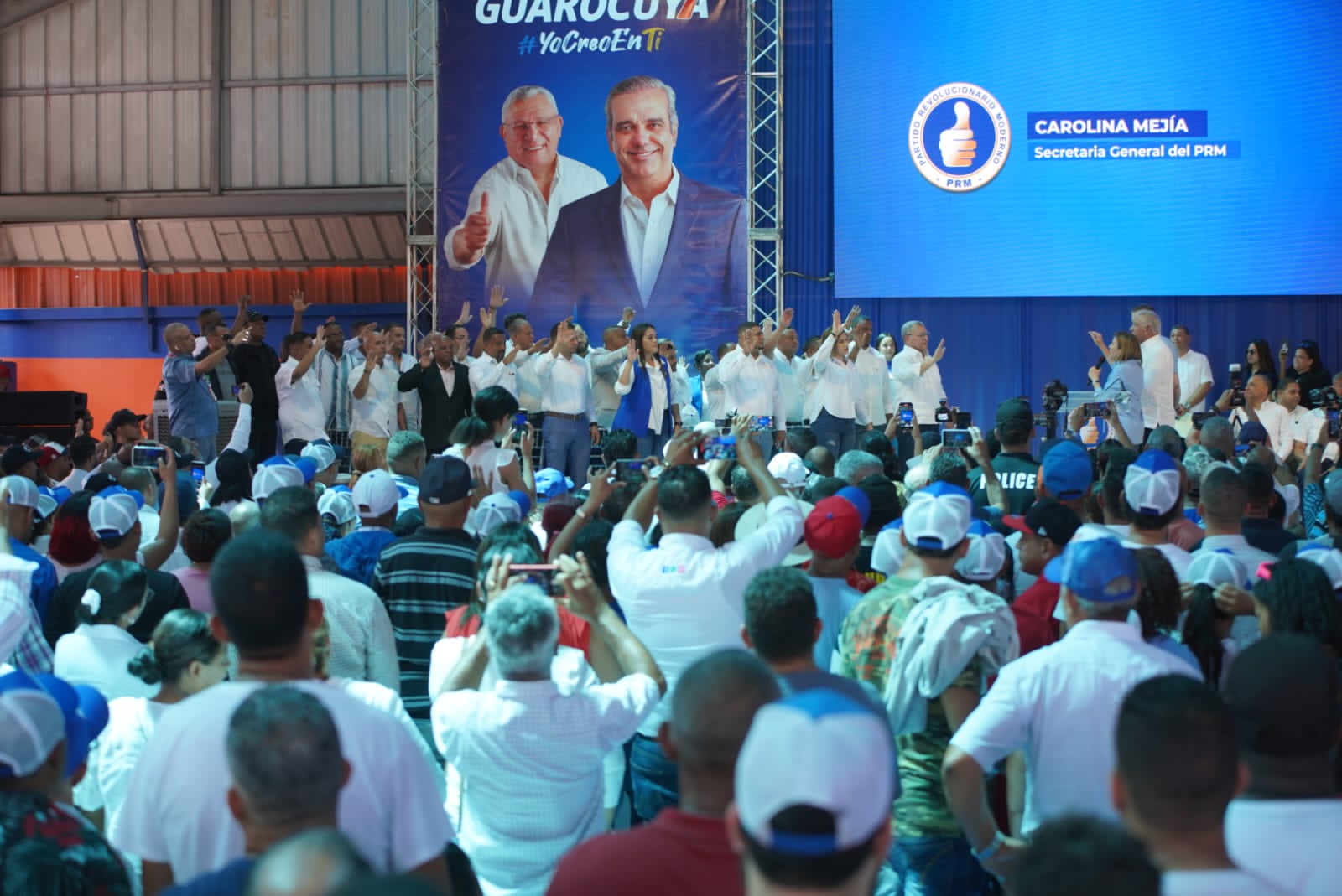 Moca. – La secretaria general del Partido Revolucionario Moderno (PRM), Carolina Mejía, juramentó al alcalde de Moca, Miguel Guarocuya Cabral, junto a su equipo político y cientos de personas más, en un acto multitudinario que se realizó en la Cancha Municipal de este municipio.