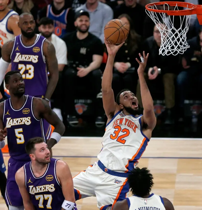NUEVA YORK, AP.— OG Anunoby anotó 25 puntos, Landry Shamet agregó 23 y los Knicks de Nueva York derrotaron el domingo 112-100 a los Lakers de Los Ángeles para arruinar el 32do partido de LeBron James en el Madison Square Garden.