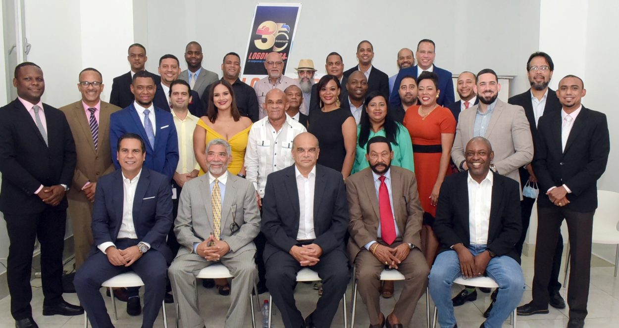 Jorge Torres, presidente de la Asociación de Cronistas Deportivos de Santo Domingo, junto a directivos de esa entidad y los nuevos miembros juramentados.