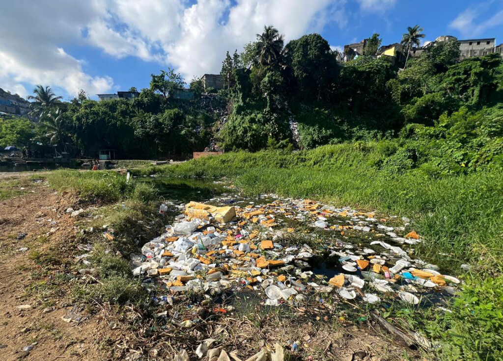 Triciclos cargados de piñas, coco, caña, lechosas, maíz, entre otros productos; camionetas repletas de frutas y víveres que se estacionan en las esquinas a vender sus mercancías; fritureros, vendedores de desayuno y comida en plena vía, producen una serie de basura que terminará también en el lugar menos apropiado.