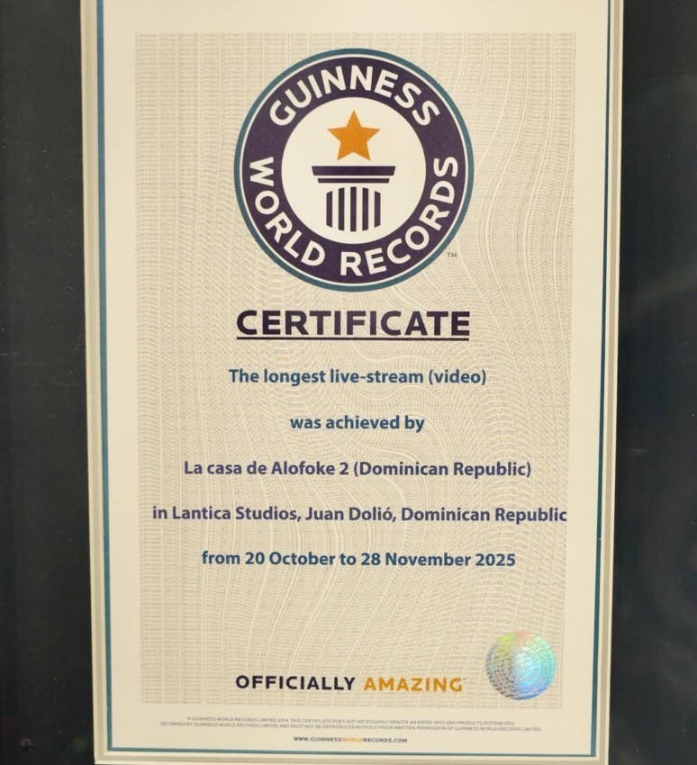 La Casa de Alofoke 2 se mantuvo en vivo durante los 37 días programados (al momento de la entrega del récord), con 916 horas de transmisión ininterrumpida durante 38 días.