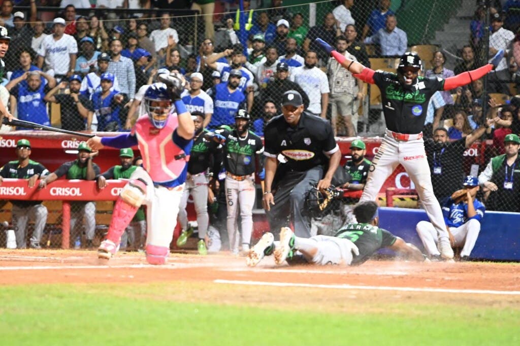 En el noveno, los de San Pedro de Macorís agregaron su décima carrera por batazo para doble matanzas de Josh Lester, pero en la jugada Magneuris Sierra anotó desde la tercera.