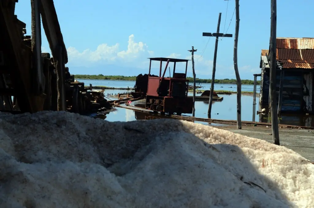 Hoy toda esta zona luce en absoluto silencio. Muy contrario a tiempos pasados, cuando el ruido constante de las máquinas, la locomotora y sus vagones marcaban el pulso de la producción salinera, el área ahora permanece cerrada y sin operaciones tras los severos daños provocados por la tormenta Melissa y el descuido del Ayuntamiento de la localidad.