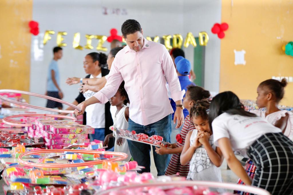 SANTO DOMINGO. Envueltos en un ambiente de alegría, el maestro Rafael Amador Figaris y la Fundación Padre Rogelio Cruz, entregaron hoy juguetes a más de mil niños y niñas del sector de Capotillo de esta capital.