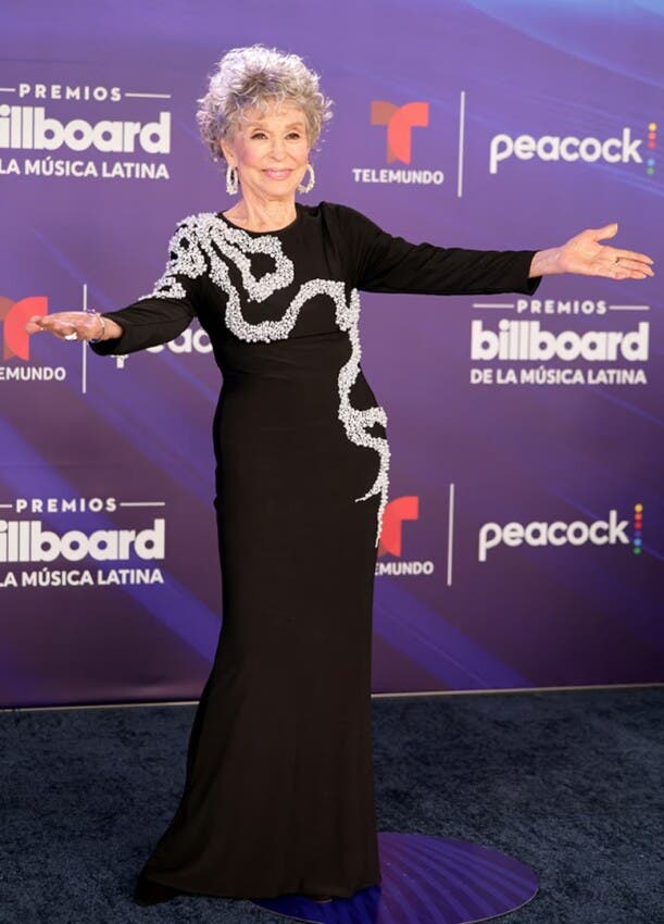 Más clásicas y con mucha pedrería brillaron la puertorriqueña Olga Tañón y la argentina Yami Safdie, que se fueron por lo elegante, pero actualizado con tejidos semitransparentes. Con aplicaciones de perlas sobre un vestido negro apareció de sorpresa la icónica estrella latina Rita Moreno, quien celebró «seguir vigente a mis ninetytres» (93 años).