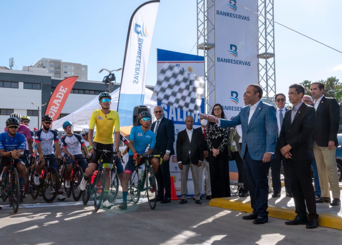 Samuel Pereyra Rojas, administrador del Banco de Reservas, da el banderazo de salida en la etapa de ayer.