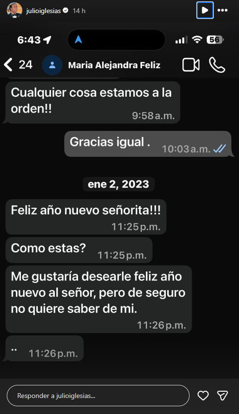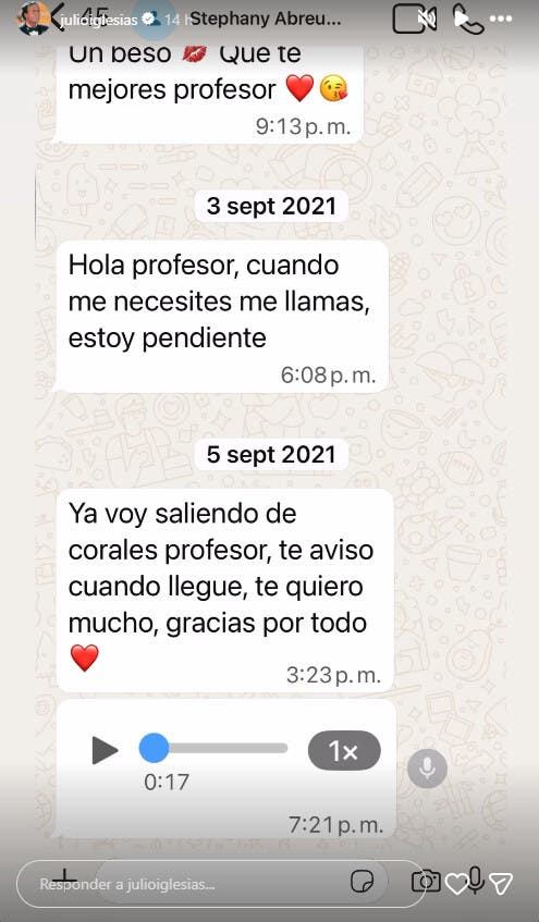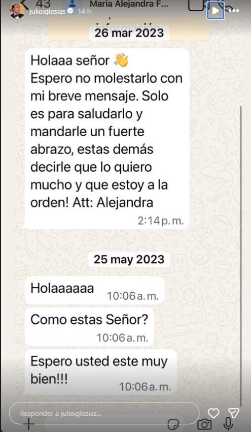 El cantante español Julio Iglesias ha publicado en su perfil de Instagram varios mensajes que supuestamente ha recibido desde WhatsApp de las trabajadoras que le han denunciado por agresión sexual con los que parece querer demostrar su inocencia.