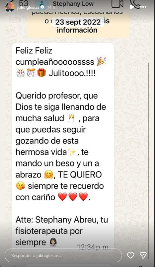 En uno más del 23 de septiembre de 2022, le desean «Feliz cumpleañooooosss Julitoooo!!! Querido profesor, que Dios te siga llenando de mucha salud para que puedas seguir gozando de esta hermosa vida, te mando un beso y un abrazo, TE QUIERO. siempre te recuerdo, con cariño.«.