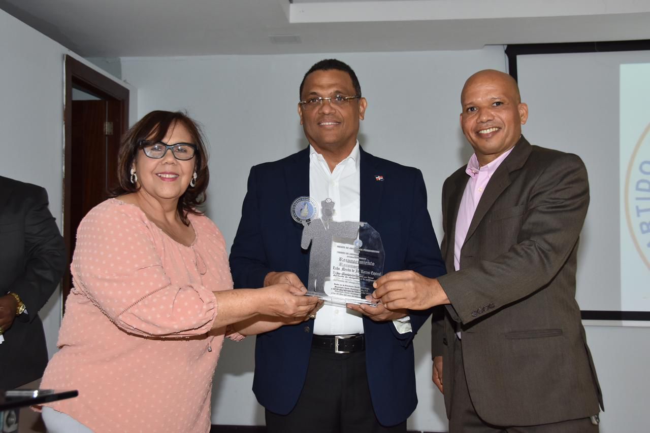 Santo Domingo Este. – El Frente de Abogados del Partido Revolucionario Moderno (PRM) en el municipio Santo Domingo Este, entregó el reconocimiento al mérito político y profesional edición 2022, al jurista y director de la Unidad Técnica Ejecutora de Titulación de Terrenos del Estado (UTECT), Mérido Torres, por sus aportes y defensa a los derechos de los profesionales de la toga, el birrete y el mallete.