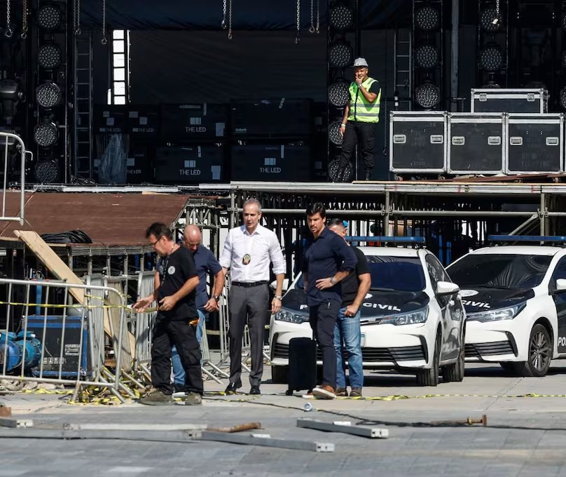 La víctima, un técnico de seguridad de 28 años, falleció por el impacto de «una estructura del montaje del escenario que se desplomó», según señaló la Policía Militar de Río en una nota.