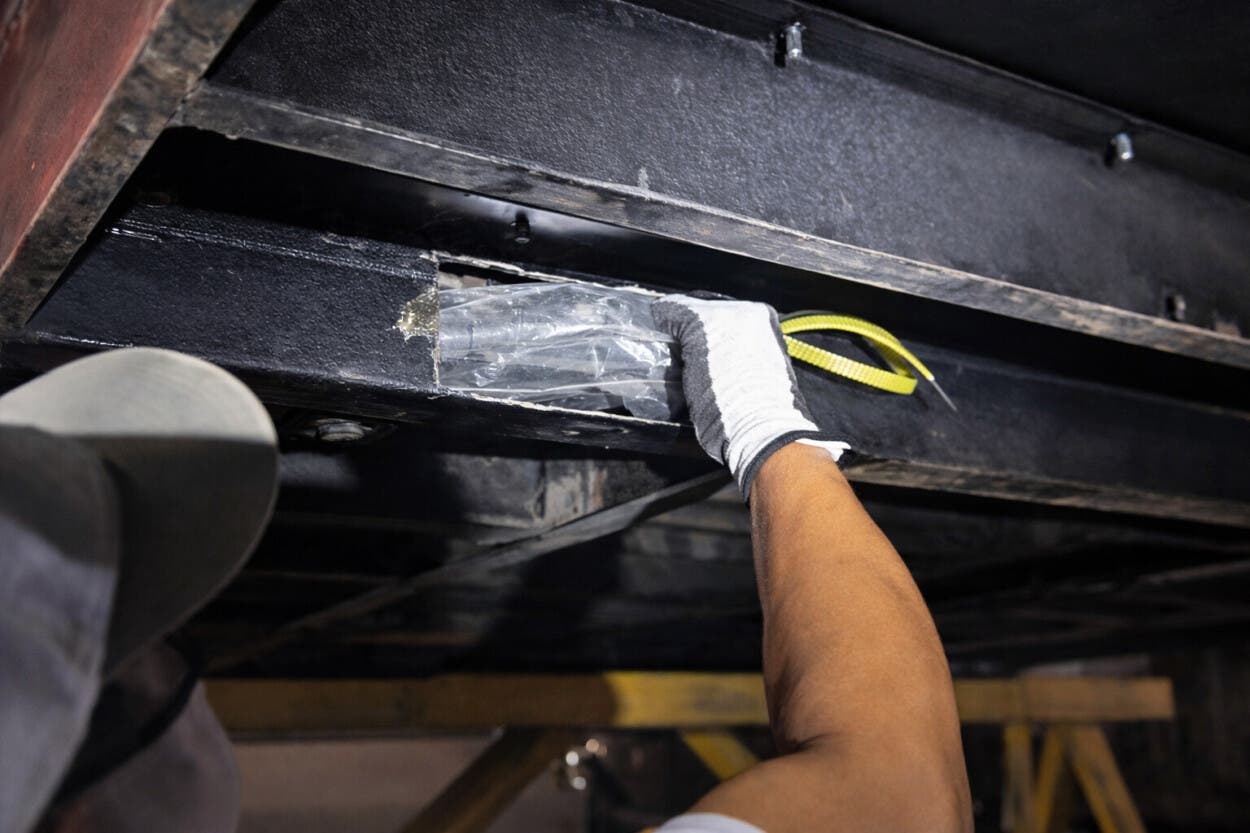 Durante la inspección, las autoridades detectaron inconsistencias en la estructura del contenedor, lo que dio paso a una verificación más exhaustiva. En el proceso fueron descubiertos compartimientos secretos (caletas) acondicionados en las puertas y el piso del furgón.