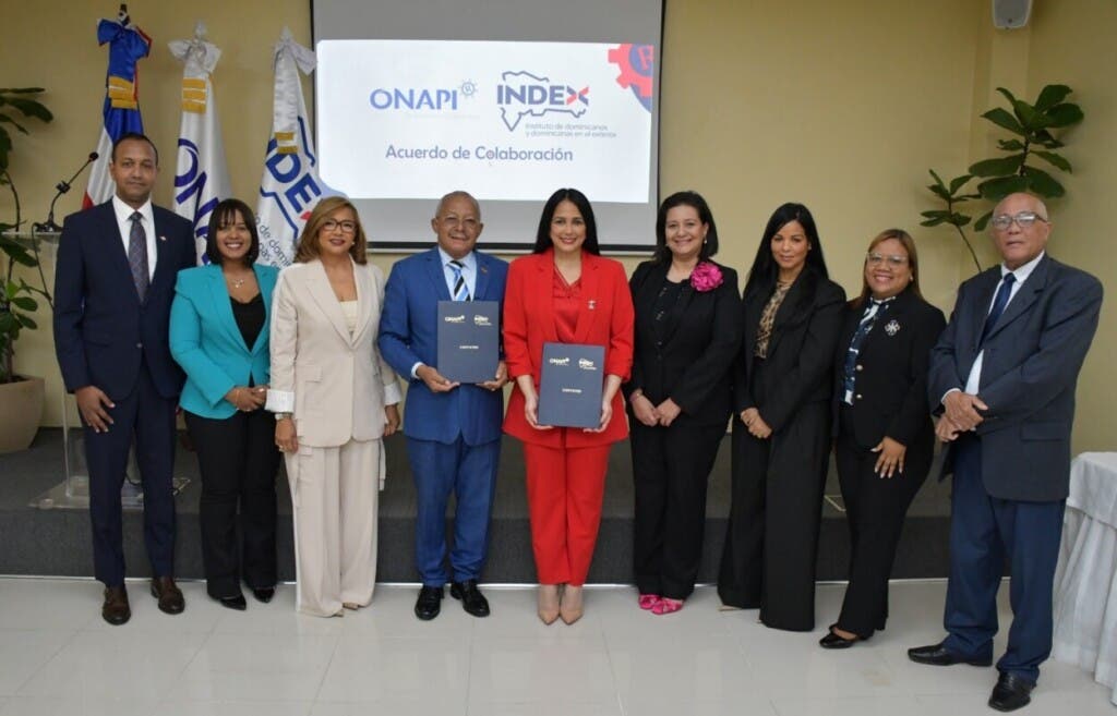 Santo Domingo.- La Oficina Nacional de la Propiedad Industrial (ONAPI) y el Instituto de Dominicanas y Dominicanos en el Exterior (INDEX), firmaron un acuerdo de colaboración interinstitucional, con el propósito de proteger la innovación de los dominicanos en el exterior, en el marco de sus misiones institucionales.