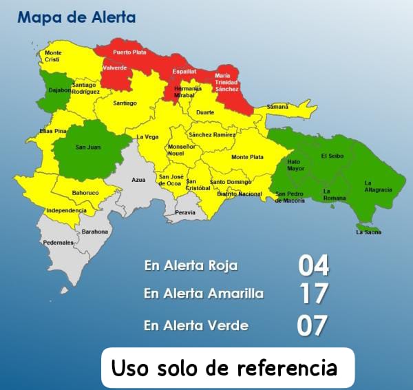 En territorio dominicano, el Instituto Dominicano de Meteorología (Indomet) es el encargado de emitir los pronósticos, mientras que el Centro de Operaciones de Emergencias traduce estas informaciones en niveles de alerta: verde, amarilla y roja, estas sirven para orientar a la ciudadanía.