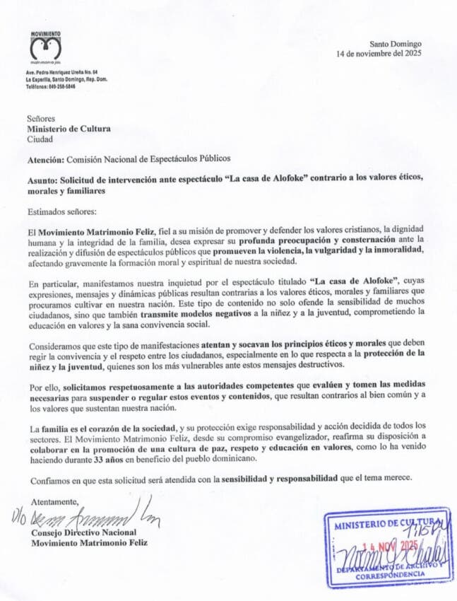 En el documento, la organización expresó su “profunda preocupación y consternación” por la difusión de espectáculos que, según su criterio, afectan negativamente la educación en valores, especialmente de niños y jóvenes. Señaló además que las dinámicas del programa “socavan principios esenciales para la sana convivencia” y pidió a las autoridades proteger a los sectores más vulnerables.