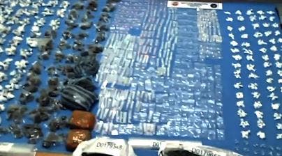 Igualmente, 432 pastillas de un material presumiblemente éxtasis, con peso aproximado de 215.5 gramos. También 378 porciones de un polvo blanco presumiblemente cocaína con peso aproximado de 2,385.0 gramos y 574 porciones de marihuana.