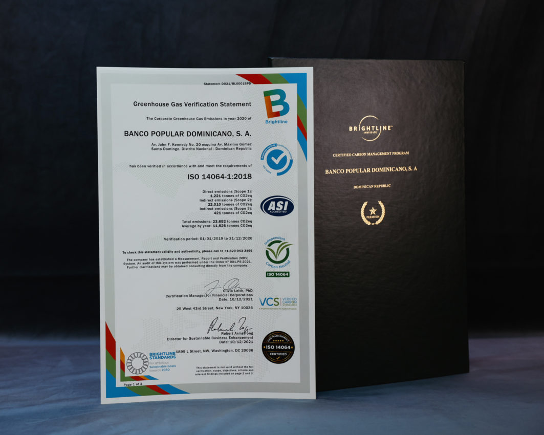 Santo Domingo. – El Banco Popular Dominicano revalidó su certificación como organización carbono neutral, otorgada por el Brihgtline Institute, manteniéndose como la única entidad financiera del país que obtiene dos veces este aval y que demuestra cómo compensa sus emisiones de Gases de Efecto Invernadero (GEI) con sus programas de sostenibilidad ambiental y ecoeficiencia.