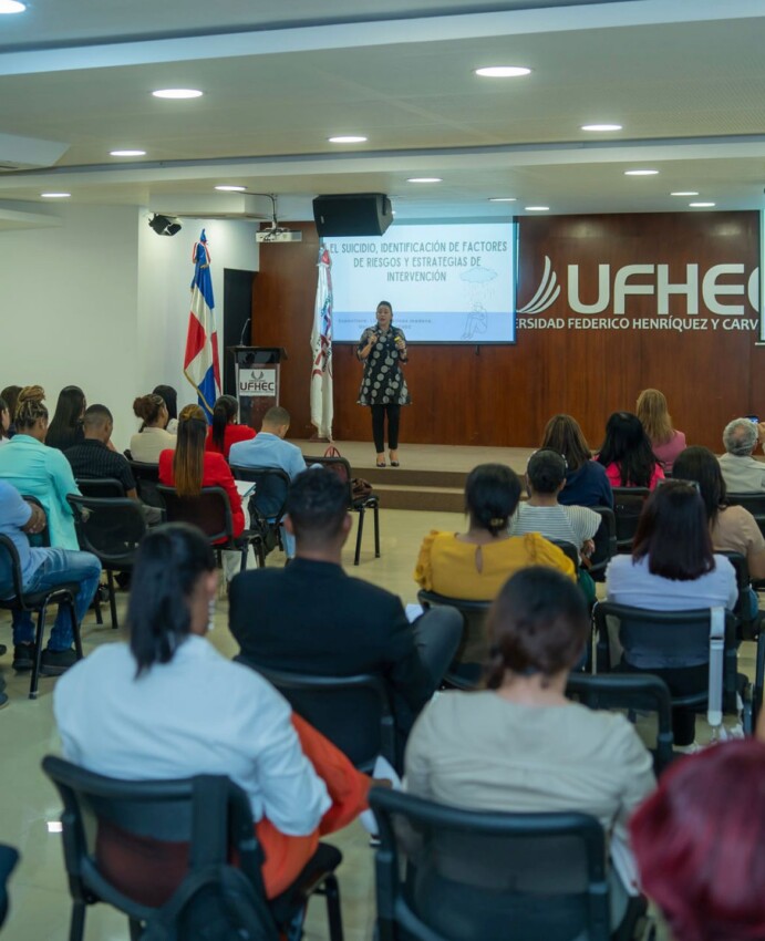 Durante la actividad, celebrada en el recinto Metropolitano de la UFHEC, la profesional aseguró que la familia, la espiritualidad, las terapias psicológicas y el desarrollo de habilidades emocionales son fundamentales en las labores de prevención del suicidio. Insistió en que los padres deben estar pendientes de los contenidos que reciben sus hijos en las redes sociales.