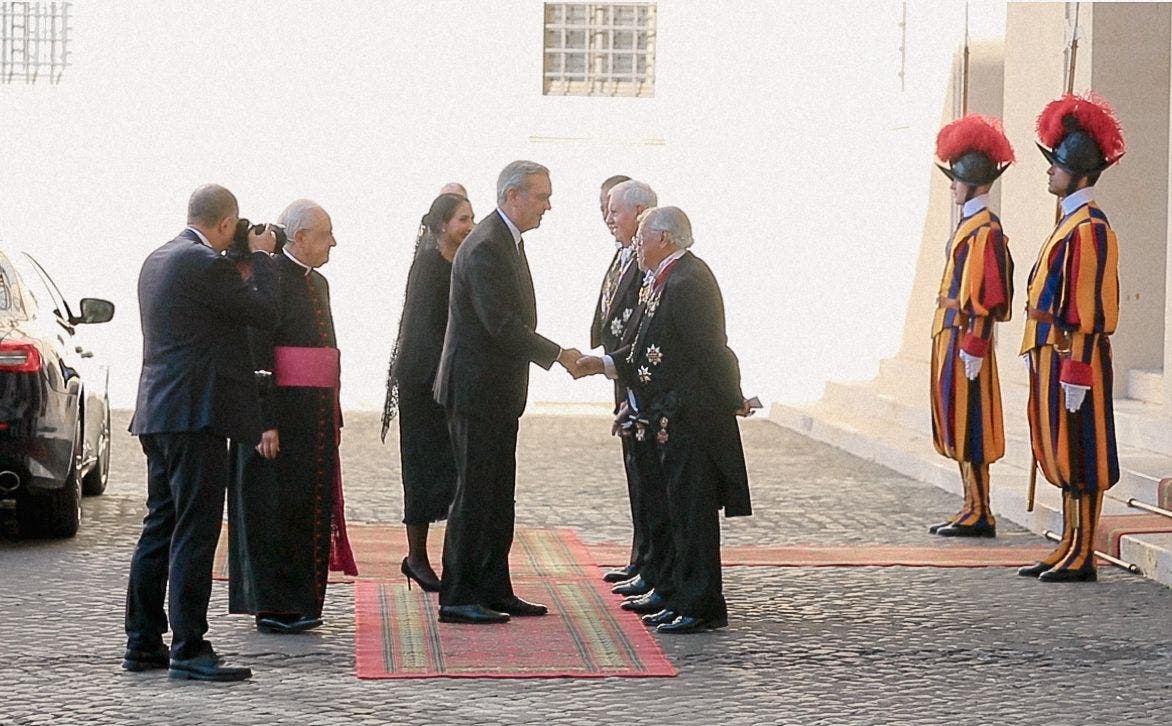 El presidente Abinader y sus acompañantes fueron recibidos por el cortejo de los gentiles hombres de su Santidad