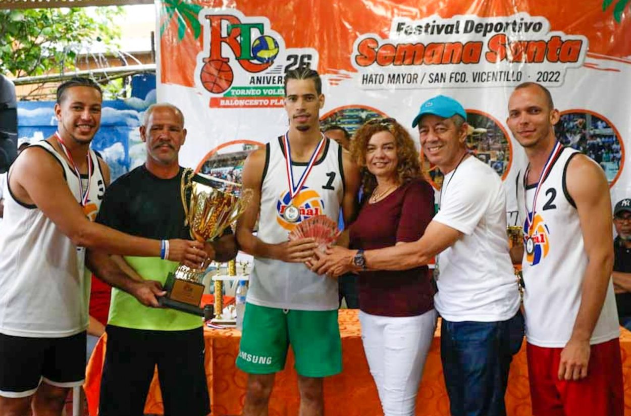 Los equipos, Puñal- 2, en masculino y Ems-Sport en femenino, en la categoría libre, fueron los ganadores del torneo de voleibol playero 3 para 3 del Festival Deportivo Hato Mayor/Vicentillo, versión 26-2022, por RD$150 mil, copas de campeones y medallas celebrado durante del periodo de la Semana Mayor en las canchas de arena del Rancho Ecoturístico Doña Callita.