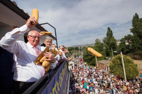 Suiza. EFE/EPA. Un juerguista enmascarado se une al evento de carnaval mientras alrededor de 9,000 ‘Muetschli’ – pequeñas hogazas de pan – son distribuidas y arrojadas a la multitud por figuras de carnaval llamadas ‘Joheen’, ‘Mummerien’ o ‘Hoerelibajassen’, durante el tradicional lanzamiento de pan el Martes de Carnaval, en Einsiedeln, Suiza, el 01 de marzo de 2022.