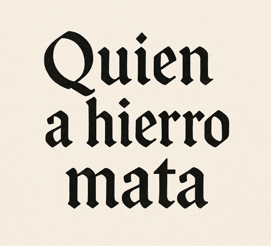 De hecho, ante la imposibilidad de precisar la razón u origen de proverbios populares, se han aventurado juicios equivocados que ni los mismísimos eruditos han podido rectificar. No es el caso del que da título a este artículo, que procede del Evangelio de San Mateo (Capitulo 25, versículos 51-52), leyéndose así: “Uno de los que estaban con Jesús sacó su espada e hirió al servidor del Sumo Sacerdote, cortándole la oreja. Jesús le dijo: «Guarda tu espada, porque el que a hierro mata a hierro muere”.