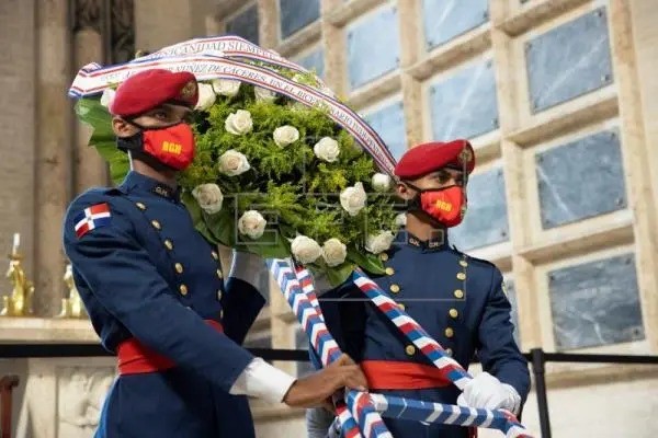 La efeméride se festejó hoy con varias actividades oficiales de bajo perfil, que incluyeron una ofrenda floral en el Panteón de la Patria, donde a primera hora se izó la bandera nacional y la banda de música del Ejército interpretó el himno dominicano.