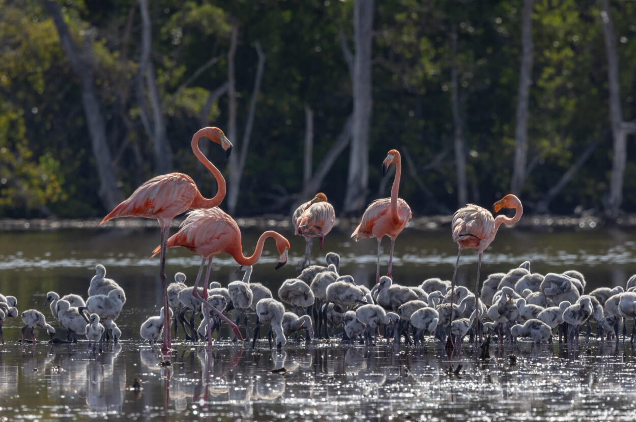 Santo Domingo. Nuevas zonas de anidamiento del flamenco americano Phoenicopterus ruber fueron reportadas en el parque nacional Manglares de Estero Balsa, República Dominicana por Eladio Fernández (Fundación Propagas), María Paulino y Luis Ramón Paulino (ambos del Grupo Acción Ecológica), en una nota científica publicada en el número 24 de la revista Novitates Caribaea del Museo Nacional de Historia Natural “Prof. Eugenio de Jesús Marcano”.