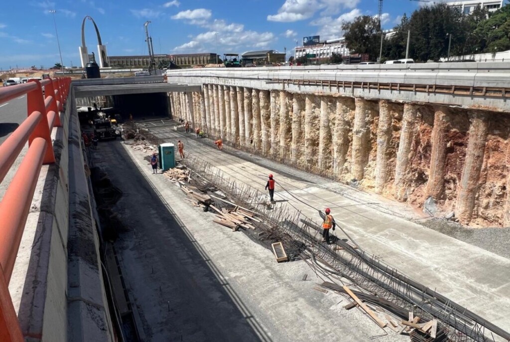 Aunque la parte del túnel debajo de la Plaza de la Bandera desde la avenida 27 de Febrero hacia la John F. Kennedy muestran avance considerable no es igual en el tramo que va hacia la avenida Independencia donde aún se trabaja en el movimiento de tierra y los preparativos para adecuar la infraestructura vial.