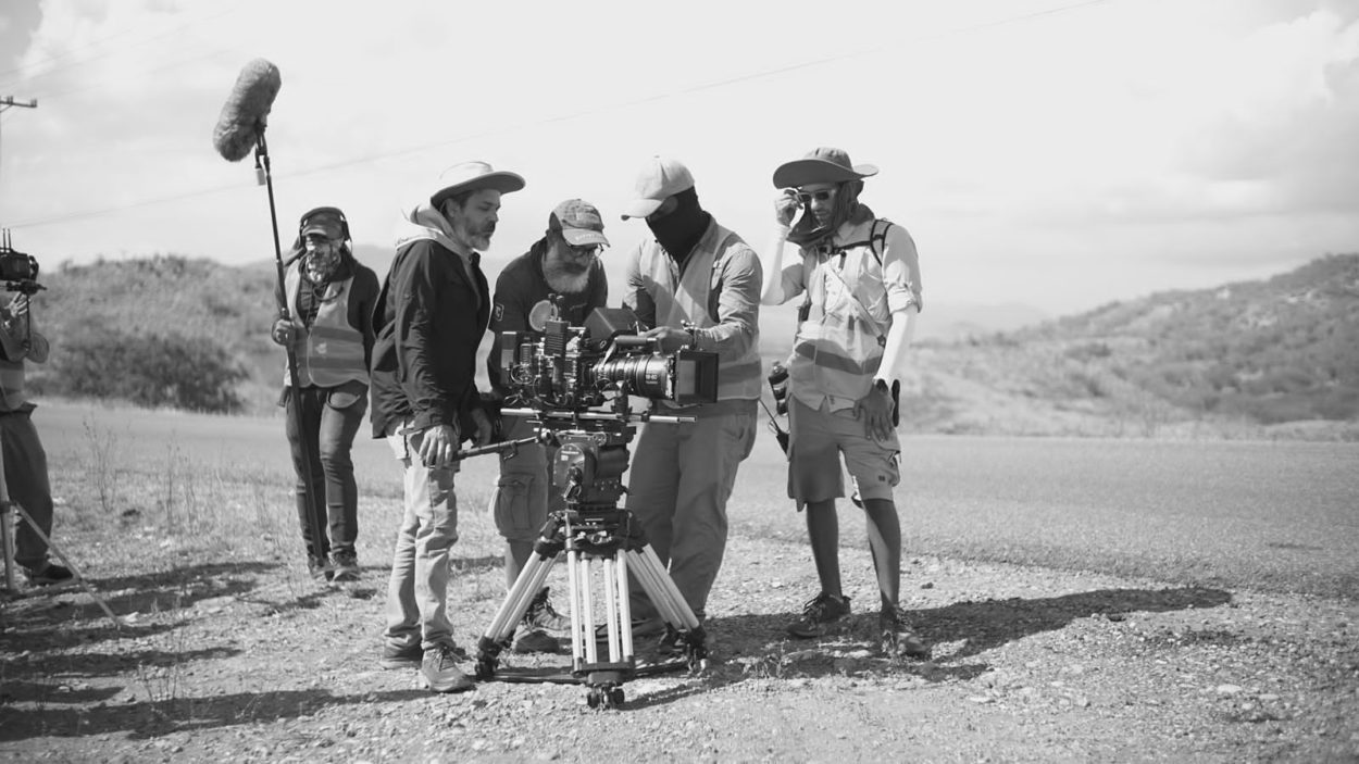 Tabaré Blanchard, a la izquierda, junto a miembros de su equipo de producción en el rodaje de la película “Primu”.